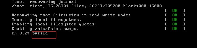 6. 点击键盘上的"b",进行重启操作,在出现下面这个界面中的 sh-3.2# 时,系统会自动停下,在这里输入passwd,是修改密码的指令: