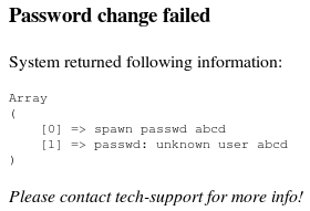 由于一些原因, 如果口令修改失败, 你可以参考下面提示获得更多详细的错误信息: