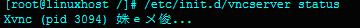 F、 检测VNC服务 命令ps –eaf (这个命令是检查在当前系统中运行的所有服务)。另外一个针对VNC服务的检测命令是 /etc/init.d/vncserver status 如果VNC服务运行正常,那么会给出提示。