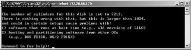 运行Fdisk的时候,首先映入眼帘的如图1所示的欢迎界面,用户通过在这个界面中输入命令参数来操作Fdisk。