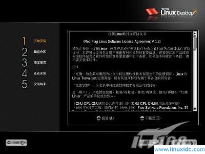 安装 Red Flag Linux Desktop 5.0之前我们需要做好磁盘备份,以防安装失败丢失数据,同时还需要了解一下自己的硬件配置:该系统需要PII以上的兼容CPU,128M内存,完全安装需要6G左右的磁盘空间。如果您的机器配置达到了上述要求,那么便可以进行安装了。