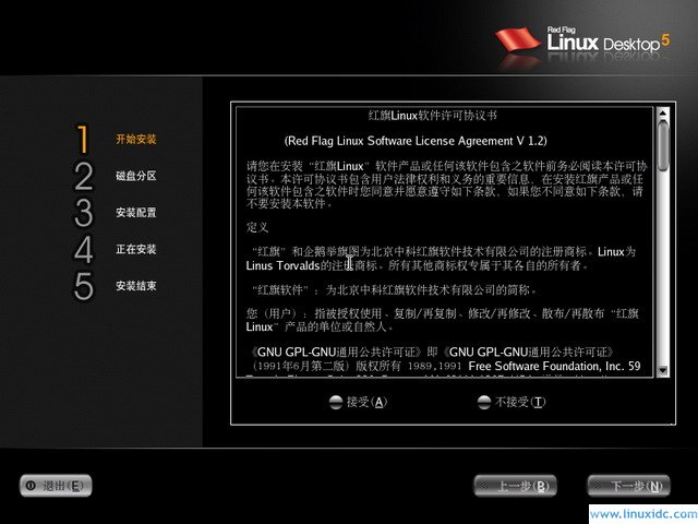 4.如果你的硬件不是太老或是太新一般都能被支持,如果你不放心可以到官方网去看看硬件兼容性列表。二,安装红旗Linux5.0桌面版: