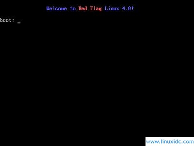 1.从bois将软驱设为第一启动,放入红旗Linux桌面版4.0 安装启动盘后重启,如果无意外将出现如下图1