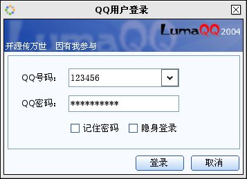 LumaQQ 是luma兄开发的,是跨平台的QQ客户端,具有可重用的纯Java核心和基于SWT的仿 QQ 界面,功能极为强劲;如果您在使用LumaQQ的时候,请不要忘记了解一下LumaQQ的历史;