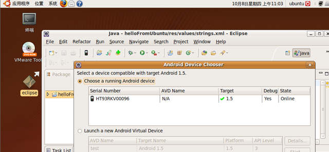 下载和安装android sdk。下载路径:http://dl.google.com/android/android-sdk-linux_x86-1.5_r3.zip
