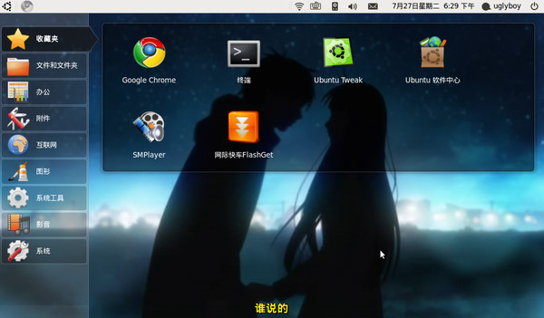 这个就是我的上网本现在使用的操作系统的桌面,从易用性,便捷性等各方面来说我觉得都还很不错,所以推荐给大家啦。这个如标题写的,是Ubuntu Netbook,Linux的发行版Ubuntu的衍生版,说起来有点绕口哈,简单讲,就是对应于Windows的另一个操作系统。不多说,先继续看图