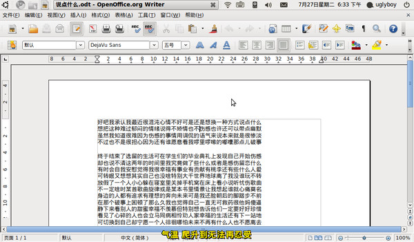 嗯,文档打开了,是OpenOffice,我是很喜欢这款软件,虽然它和MSOffice的兼容性还有点问题,像我一样偶尔用还好,如果要用来办公,必须经常处理doc文档怕就会遇到麻烦,当然,最好的解决办法就是统一都转成pdf格式。