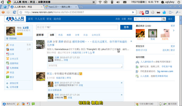 这个是我的最爱Chrome浏览器(对应于IE浏览器),和Win下的Chrome完全一样,即刻上手。其实Chrome下的字体是很舒服的,可是因为截图分辨率的关系,看起来字体似乎有点淡。