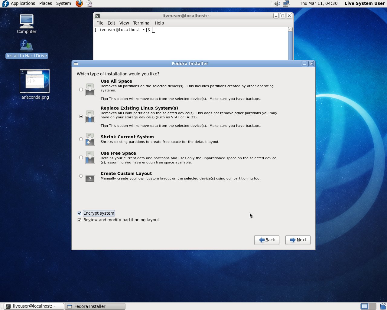 Fedora的Anaconda有了很大的改进,完全重写了存储界面,对mapper设备有了更好的支持。有点不爽的是,Alpha里的Anaconda虽然能够识别mapper设备上的分区,但是格式化就会出错。这是mke2fs的bug。现在已经修复了,过几天Beta出来就不会出现这种问题了。 由于简体中文改用了文泉驿正黑作为默认的字体,并且经过精心的设置,用户无需折腾,也能获得很好的文字观感。