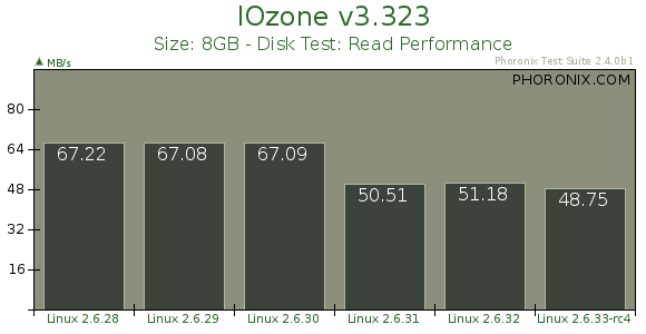 Phoronix.com近日就对采用EXT4文件系统的多个Linux Kernel进行了一次对比测试,包括64位的2.6.28、2.6.29、2.6.30、2.6.31、2.6.32、2.6.33-RC4,安装操作系统为Ubuntu 9.04,所以设置均保持默认。除了常规的性能对比测试,最后我们还会试验一下nobarrier挂接参数。