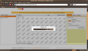 安装配置工作到这里算是告一段落了,在系统托盘区应该就会出现一个 Ubuntu 的小图标了。网页这时候也变成了上传和管理页面。在这个页面中单击 upload 就可以上传文件。