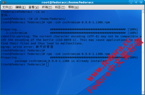 下载后进入cxchromium-0.9.0-1.i386.rpm文件所在目录,打开终端,输入rpm -ivh cxchromium-0.9.0-1.i386.rpm