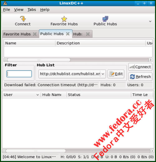 在Fedora下的安装只要一个命令,打开终端,输入su -c ‘yum install linuxdcpp’,再输入密码即可搞定。