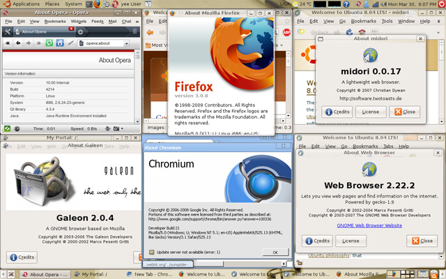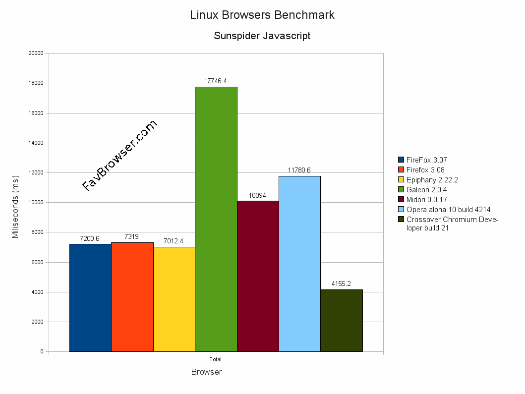 正如你所看到的,虽然还十分不成熟的Linux版Chrome(chromium)在JavaScript方面的性能如同在Windows平台一样一枝独秀,性能几乎达到了Galeon的4倍,与竞争对手相比也接近2倍。