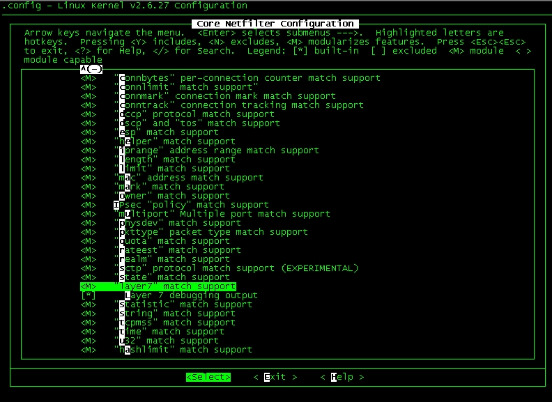 # patch -p1 < ../netfilter-layer7-v2.21/kernel-2.6.25-2.6.28-layer7-2.21.patch