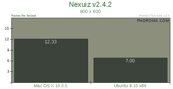 不管分辨率高低,DarkPlaces引擎游戏性能上Mac都要比Ubuntu快四分之三,差距很明显。