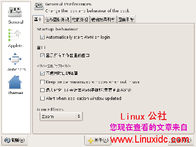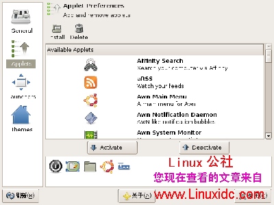在新立得软件包管理器安装avant-window-navigator-trunk,avant-window-navigator-data- trunk,awn-manager-trunk(或avant-window-navigator,awn-manager,前者为官方释出的稳定版 本,后这为正在开发中的版本)和 awn-extras-applets-trunk