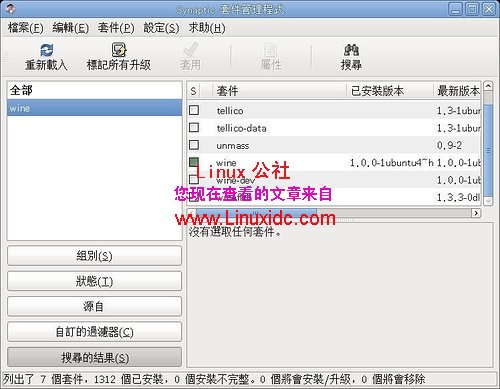 首先确定Ubuntu 8.04下Wine 已经安装完成,可以到套件管理程式找到 Wine 后安装,安装完后 按屏幕上方工作列上的 应用程式 ==> Wine ==> Configure Wine ,先选视窗上方的音效再将视窗下方的 驱动程式模拟打勾。