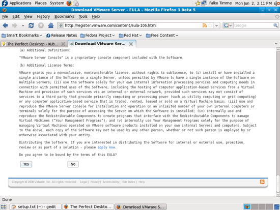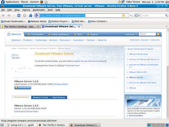How To Install VMware Server (Version 1.0.6) On A Fedora 9 Desktop