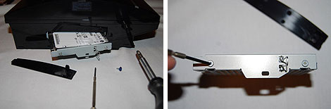 The drive is located behind a small removable panel on the side of the PS3 and can be replaced without too much muss and fuss. It is secured in a removable cage, which is held in place by one screw. The upgrade is similar to a drive replacement in a PC—old drive pops out, new drive pops in. When the console is turned on, the PS3 formats the new drive.