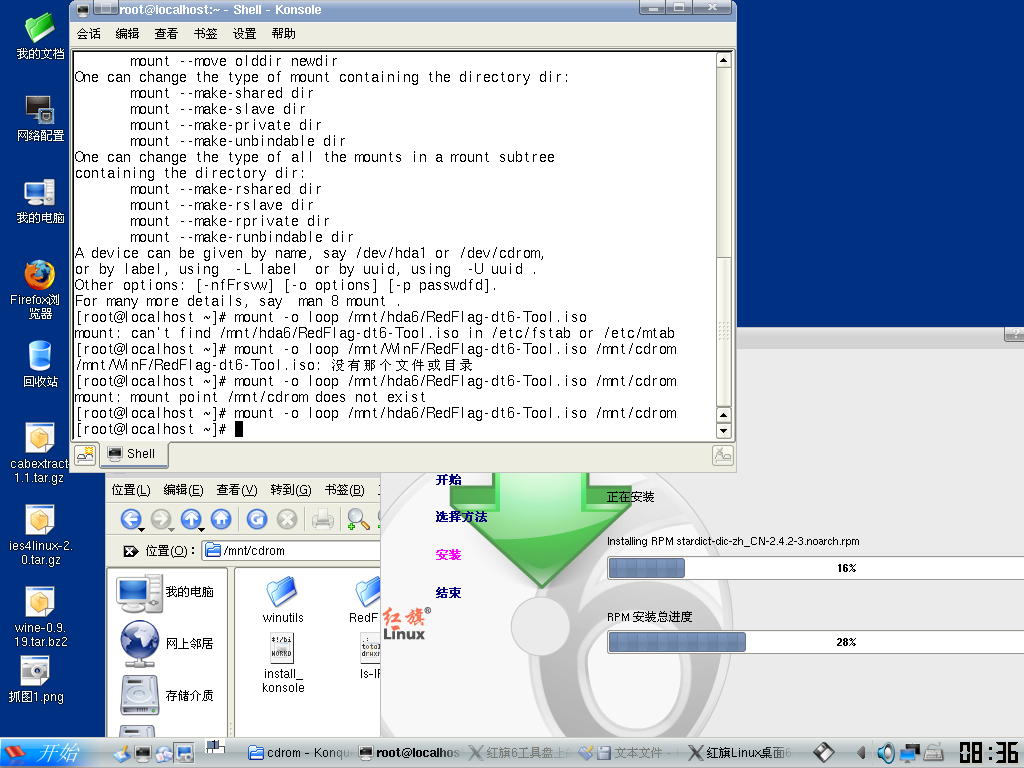 我的红旗Linux6.0桌面版挂载工具盘及安装图: