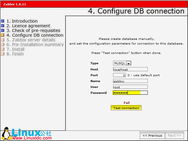 填写 mysql连接参数,Test Connection,成功后,单击next,在出现的页面中输入Host IP或DNS能解析的Host Name,因此处,我的机器未加入DNS,所以使用了IP: