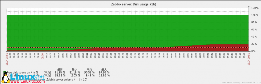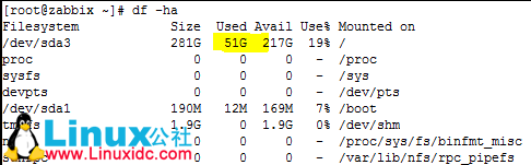 在Zabbix Server中查看磁盘情况发现,根目录下的空间比之前增长了很多:[root@zabbix ~]# df -ha
