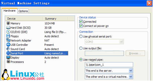 1. 开发机和目标机通过vmware的命名管道建立串口设备,其中开发机作为管道的client,目标机作为管道的server,如图所示