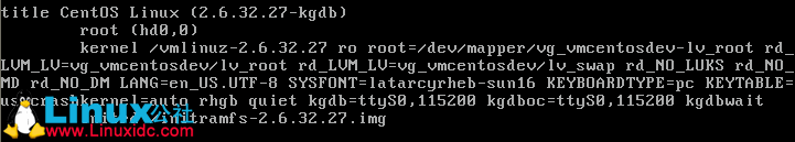如果想让kernel在启动时就hold住等待调试的话,可以修改grub参数,如下图所示
