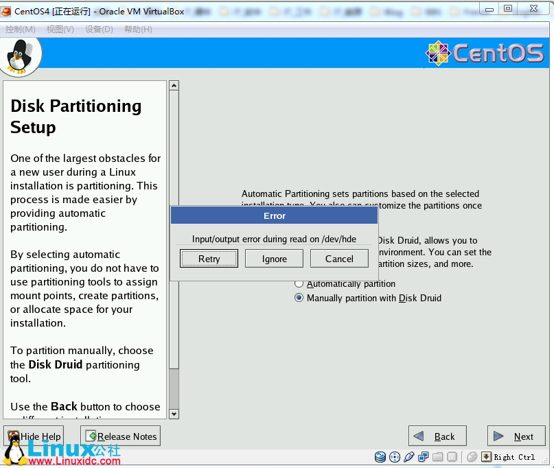 input/output error during read on /dev/hde