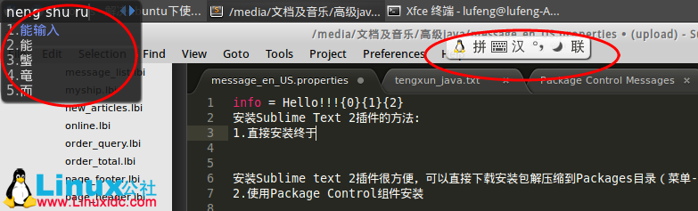 我使用的是XUbuntu 11.10,使用Sublime Text 2的时候发现无法输入中文,不断切换输入法还是不行,很坑爹的,这也不是快捷键的问题。从网上找了一个解决方案是说安装scim,然后使用scim-brige方式,并调整一下配置就可以在sublime text2里面输入中文,但我参照那个方法还是无法输入中文。后来又找了资料,另一种方案是安装上fcitx。最终成功了,把我的解决办法如下: