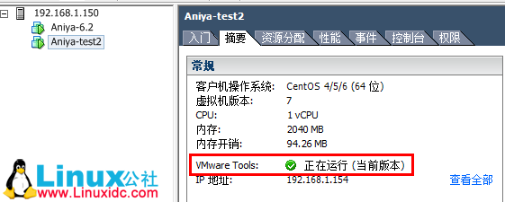 9 检查虚拟机“摘要”选项卡上的VMware Tools 标签,验证VMware Tools的状态