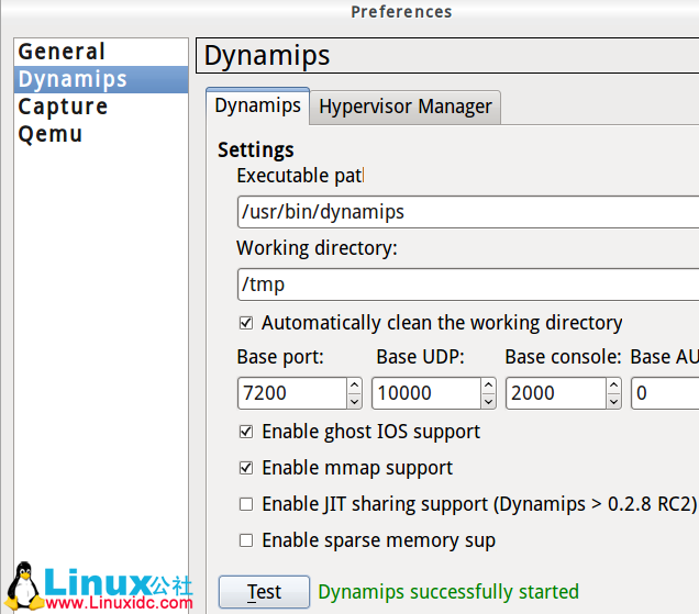 1. Edit--Preferences--Dynamips--test