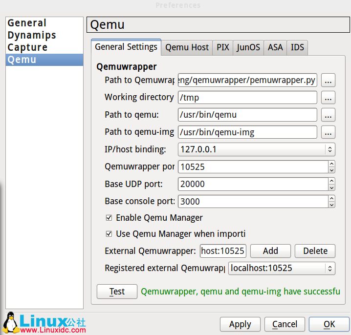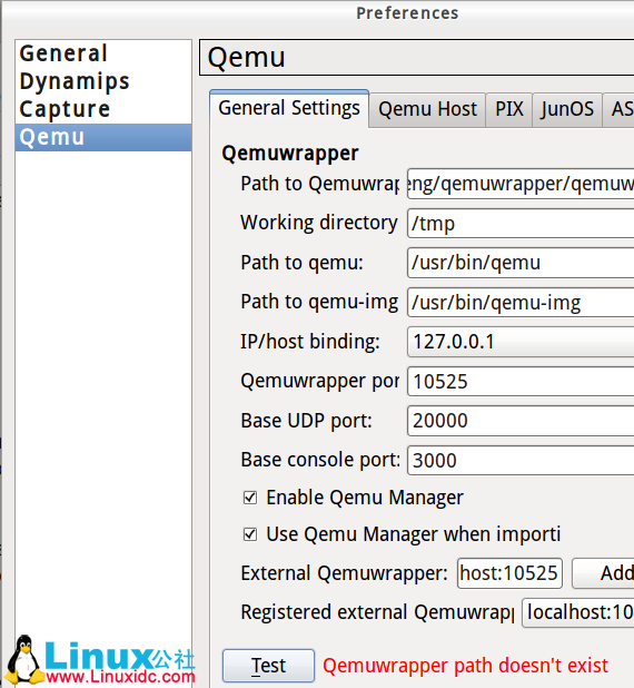 2. Edit--Preferences-Qemu--test