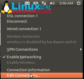 Ubuntu 拨号上网其实很简单,Ubuntu 右上角的连接图标右键编辑连接就可以了,如下图所示: