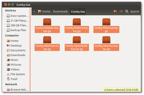 5.现在选择你需要的文件夹,例如:如果你想在Linux Mint中安装Conky就需要选择Conky Mint-lua,如果是想在Ubuntu中安装则需要选择Conky ubuntu-lua文件,以此类推。