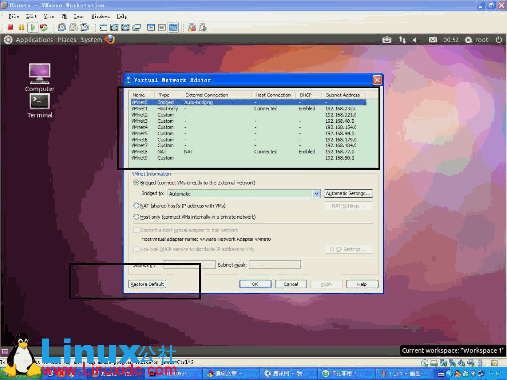 搜了下要安装这个,那个。很麻烦。其实只要虚拟机edit下,虚拟机网络设置中,复位一下就行~