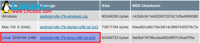 打开官网: http://developer.android.com/sdk/ndk/index.html 下载NDK 开发包,当前最新版本是r7b,如下图: