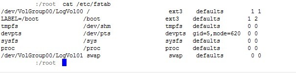 [root@localhost~]#vi /etc/fstab/
