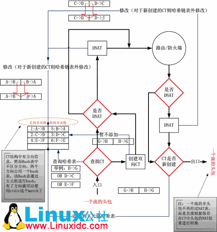 ip_conntrack内置于Linux协议栈的Netfilter框架,其实现比较复杂,然而其逻辑却很简单。ip_conntrack追踪每一个流,一个流由五元组来定义,五元组这个网络基本术语就不解释了。因此ip_conntrack必然能对“哪里是一个流的开始”做出判断,虽然这种判断不总是精确的,详见《linux之ip_conntrack容易混淆的问题点滴》http://www.linuxidc.com/Linux/2012-03/55823.htm。