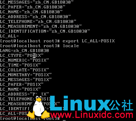 第二步:#export LC_ALL=POSIX (export 命令导出修改LC_ALL语言选项,注意 LC_ALL 与“=”之间不要有空格)