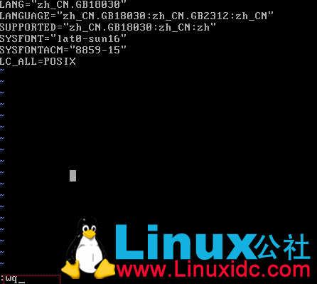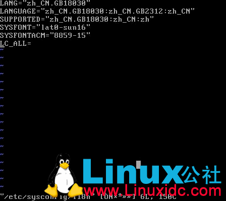 第一步:#vi /etc/sysconfig/i18n (利用vi编辑器修改配置文件i18n)