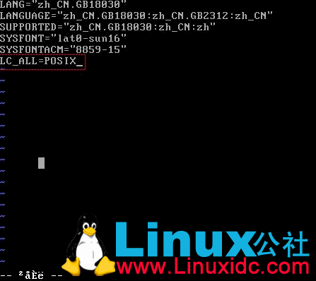 将LC_ALL=POSIX写入i18n配置文件中,如图