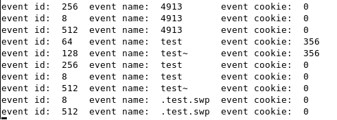即使把"."开头与"~"结尾的世界过滤了,对于test文件仍旧有3次操作,分别是删除,创建与保存,通过过滤队列,就只剩下一个事件,一定程度上也提高了效率。