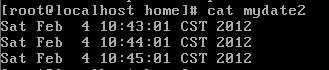 3. 每分钟将系统时间追加至 mydate2 文件: date >> /home/mydate2