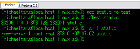 现在通过这个函数我们可以取得stat结构体了,那么通过读结构体就能得到ls –l 一样的效果了。