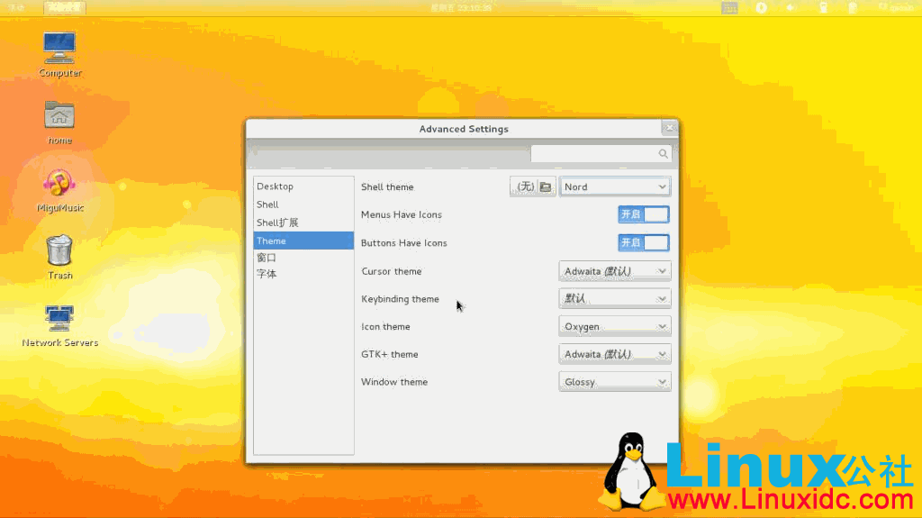 注意一下,在最新内核版本的Ferora 16中,tweak tool里面的shell theme不能正常显示,我还没有找到解决方法,不过主题还是能正常显示的。