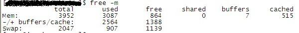 第二行used列中的2564,意思是已使用的内存数-buffers-cache后的内存,(即每一行中的used-buffers-cache)