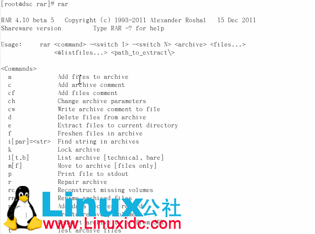 ok,安装完毕,执行rar命令: