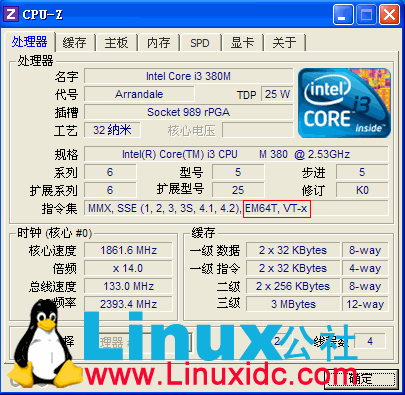 用CPU-Z查看,intel处理器查看如下(指令集需要支持EM64T,VT-x):